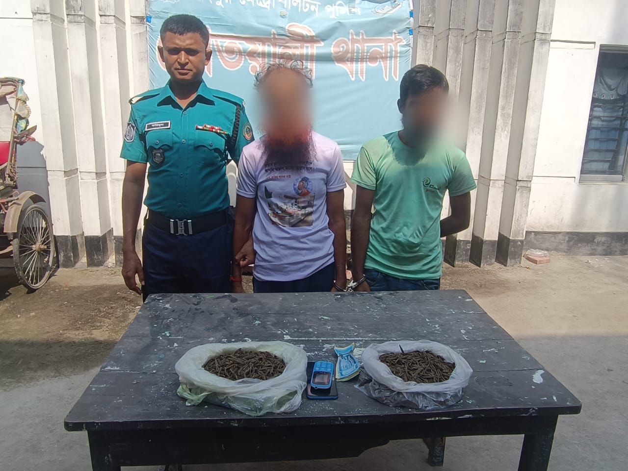 তল্লাশি চালিয়ে গাঁজা, নগদ টাকা ও মোবাইল ফোন জব্দ করা হয়েছে।”